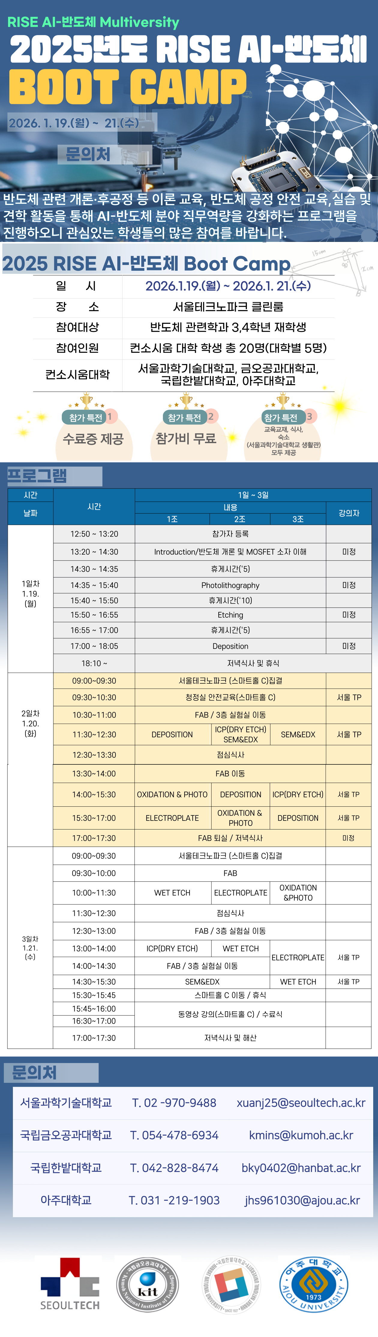 [비교과] (모집마감)[RISE] 2025 AI-반도체 Boot Camp 교육생 모집(무료) (~12/21(일)까지)